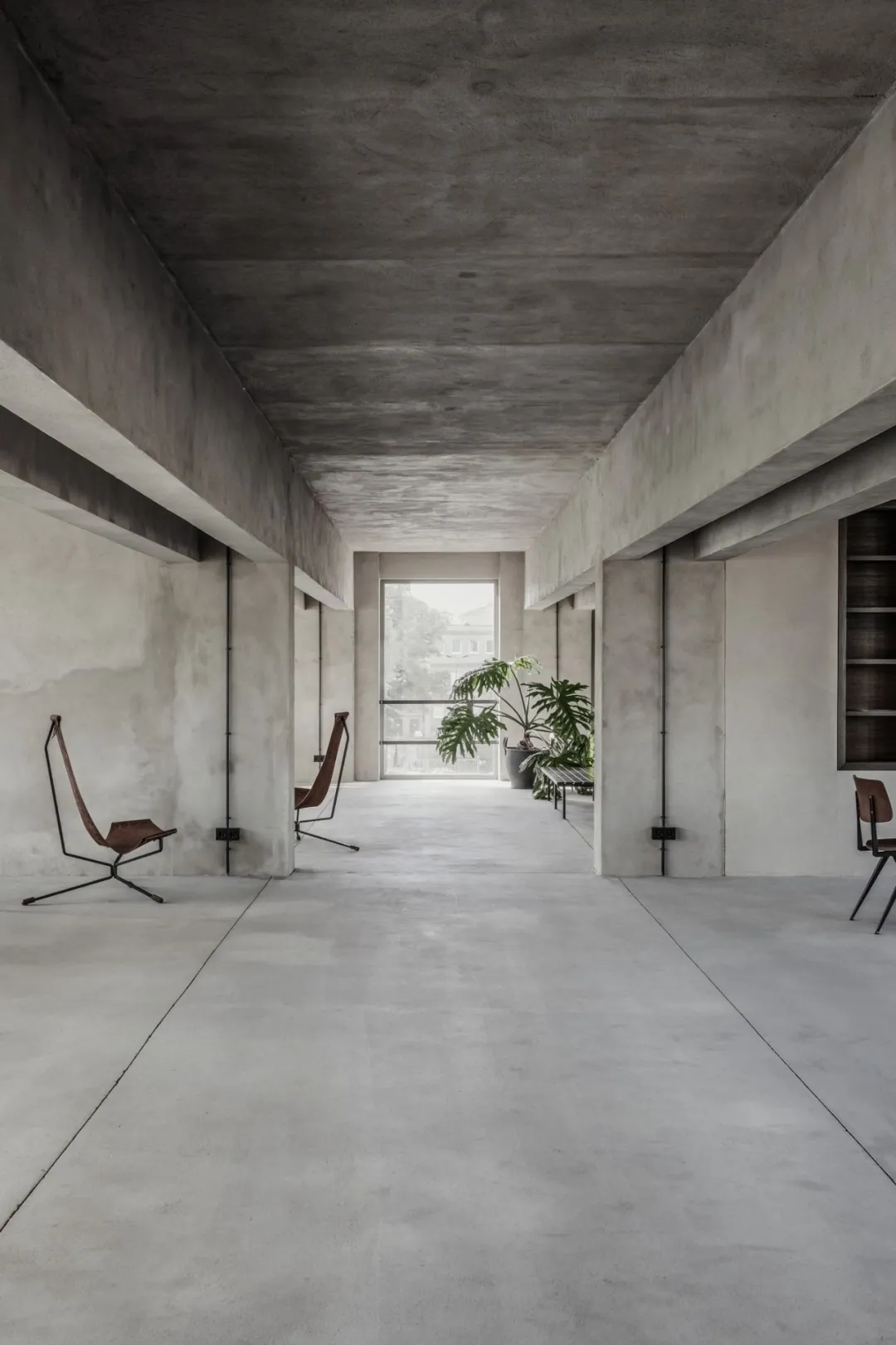 不只是工業(yè)風(fēng)鐘愛水泥漆,侘寂風(fēng)與水泥漆也是非常和諧,枯敗的原木與水泥漆的原生態(tài)紋理搭配,堪稱一絕。